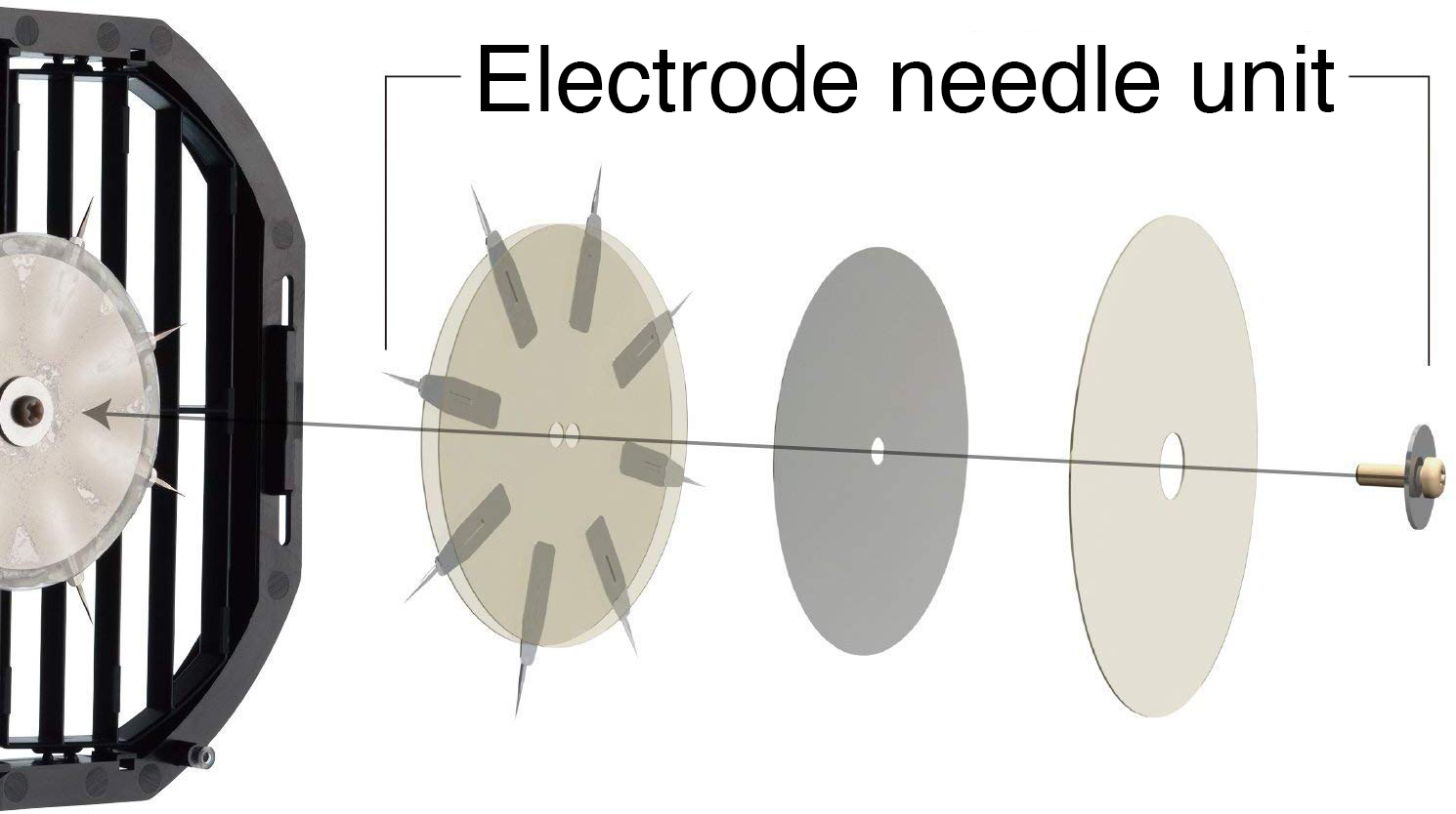 • Improvement in maintenance by easy-replaceable electrode needle unit.